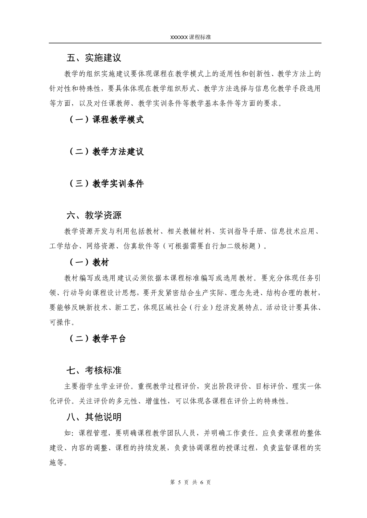 阿克苏职业技术学院课程标准参考模板